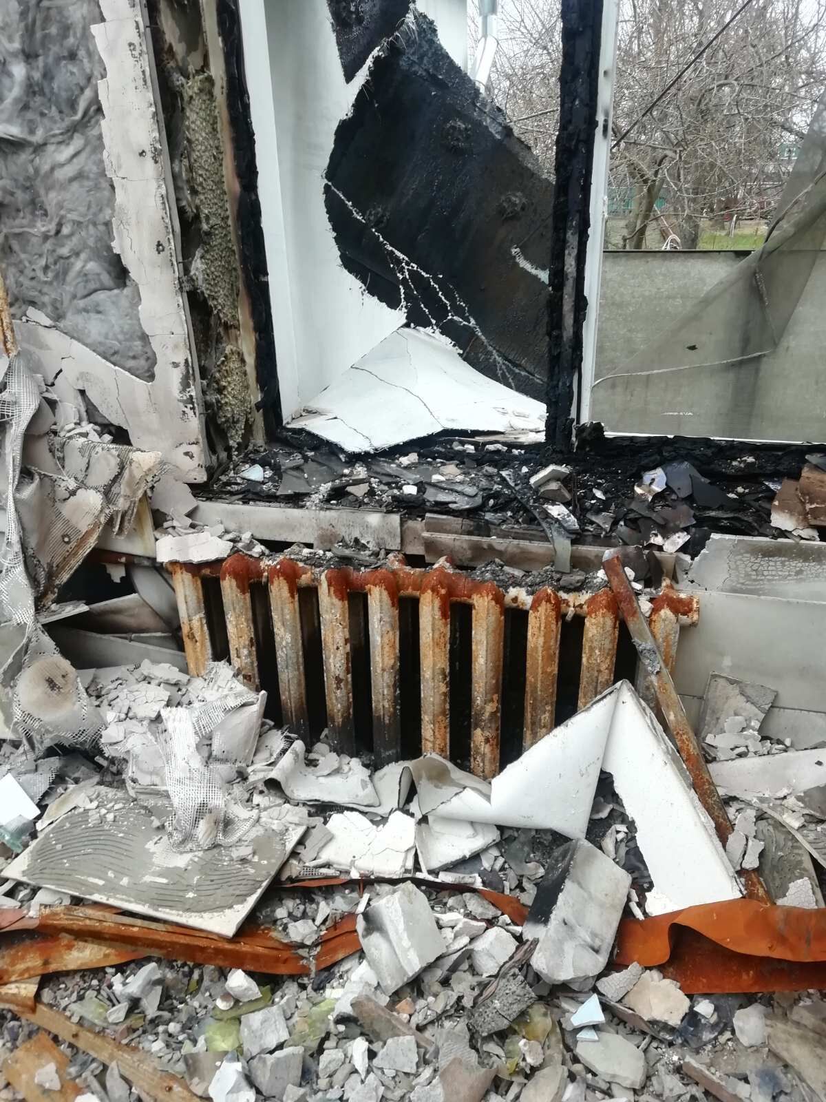 An enemy shell hit her house directly. A fire broke out, destroying the home almost completely.